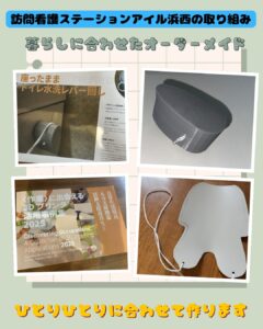 訪問看護ステーションアイル浜西では、これからも暮らしに寄り添い、一人ひとりに合わせたオーダーメイドの支援を大切にしていきます。