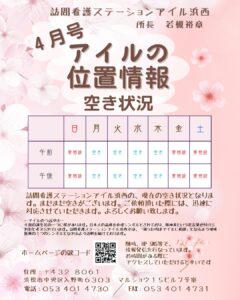 訪問看護ステーションアイル浜西では、新規利用者様をスムーズに受け入れができるよう空きを作っております。困難症例なども、まずアイルに相談!ケアマネさんが、困っている事例についてどうしたら良いか分からないなどの相談も受け付けております。